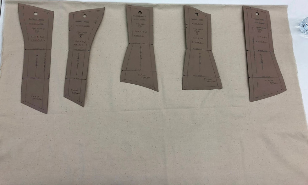 Today I was quite stressed as our hand in for Hobson’s Choice is TOMORROW how time flies! When I arrived in the studio Katherine had laid out tables in our allocated seating areas (2 metres apart!). Our task was to start the process of making our own corsets! I was very eager to find out how to construct a corset. But I was surprised how much preparation work we needed to do, which was quite tedious drawing around and cutting out 40 panels. This took the whole of the afternoon as every piece had to be exact and measured out perfectly. The review and reflection week task was to construct the two halves of the corset ready for our next session.