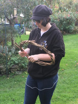 For this session, I worked from home as it would be too difficult to transport the skirt on the train, Today the skirt was born, My first hoop was the waistband, the following hoops were scaled up to create the 'bell shape' of the skirt. This is a process that I learnt when creating my willow fruit bowl at Center Parks whilst on holiday. The uprights of the skirt was very difficult as the rods had a tendency to slip down and after a few days also shrunk!!